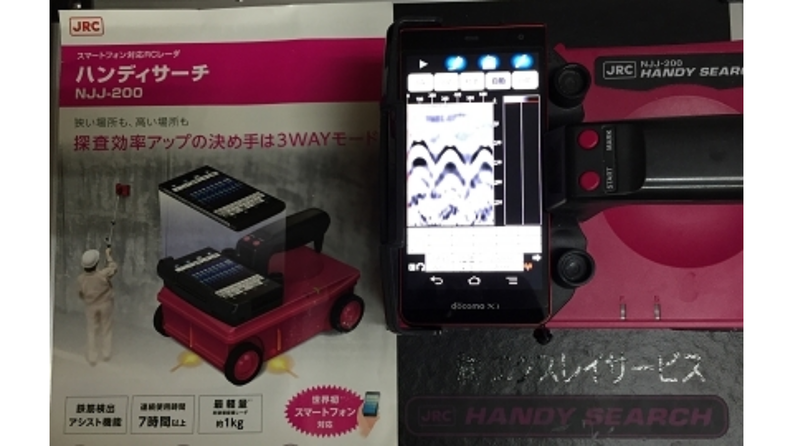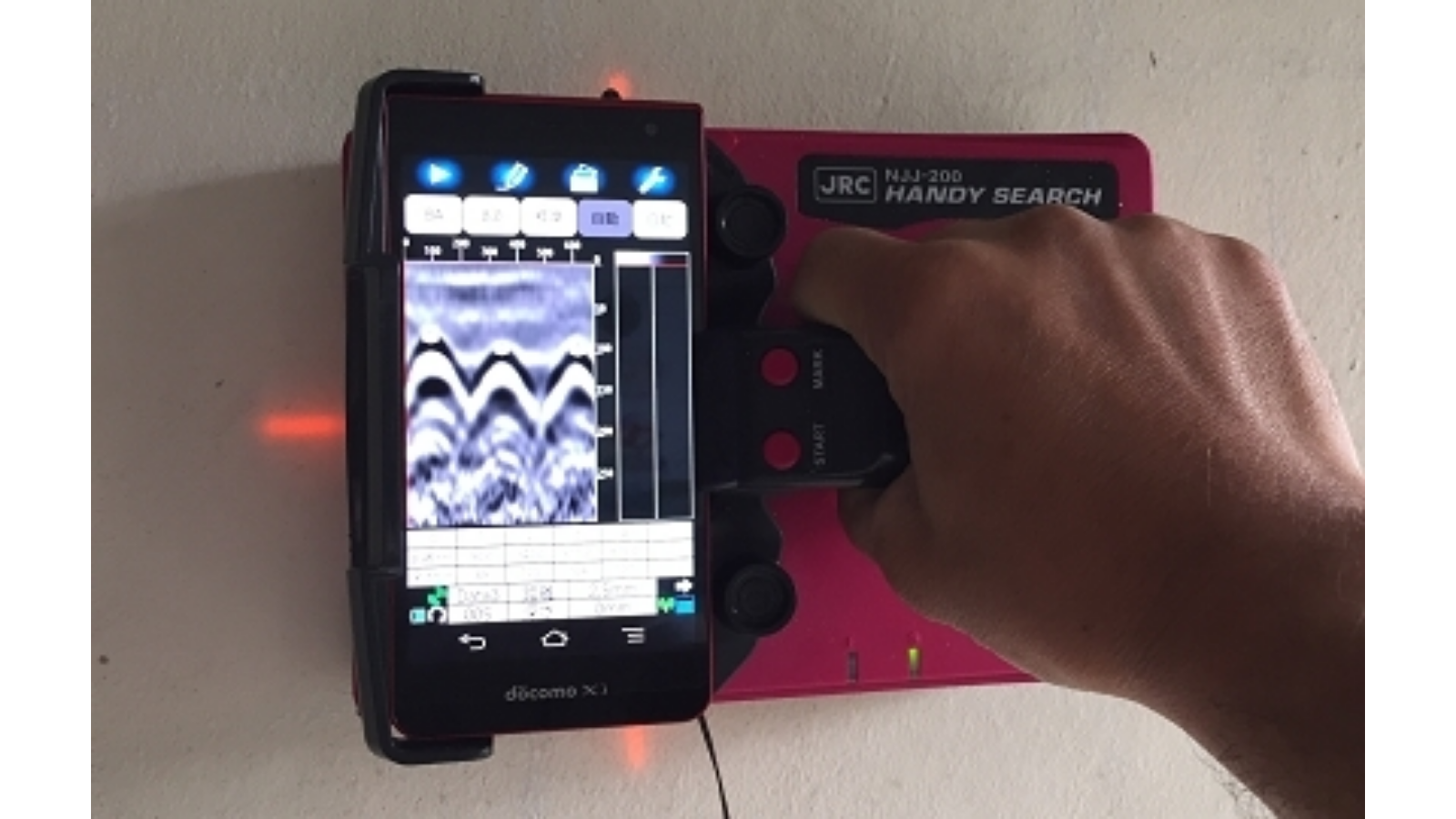 本体からのレーダー反射波(連続画像)をスマートフォンを取り付けて探査していきます。