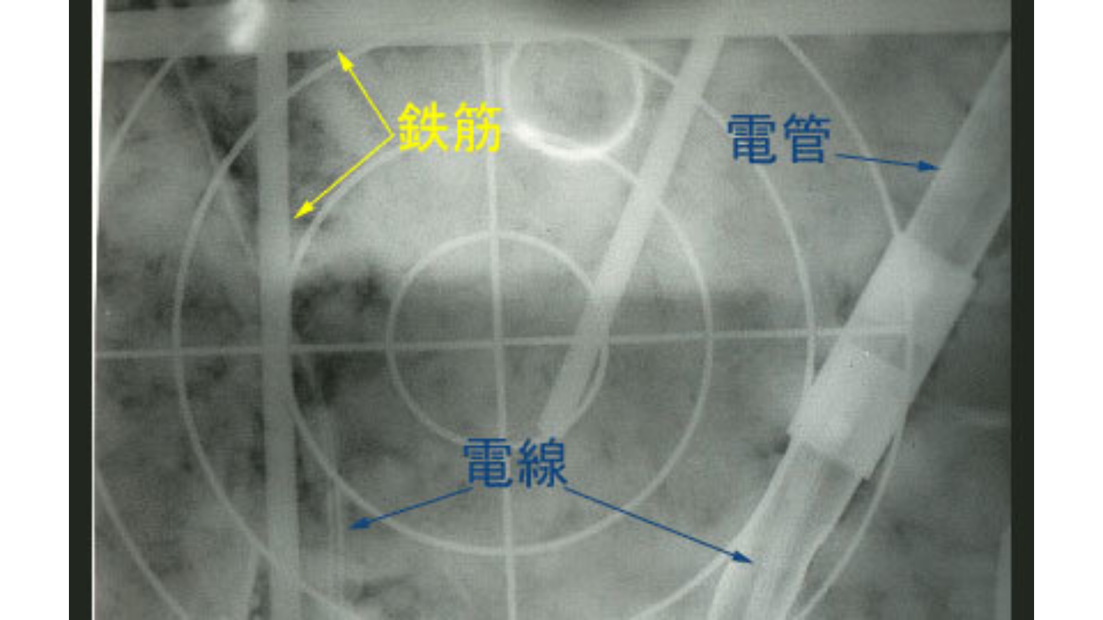 コア穿孔(穴あけ)等を行う際に、このような電線の切断事故や、無用な鉄筋の切断等を避けるために、躯体のレントゲン検査を行います。