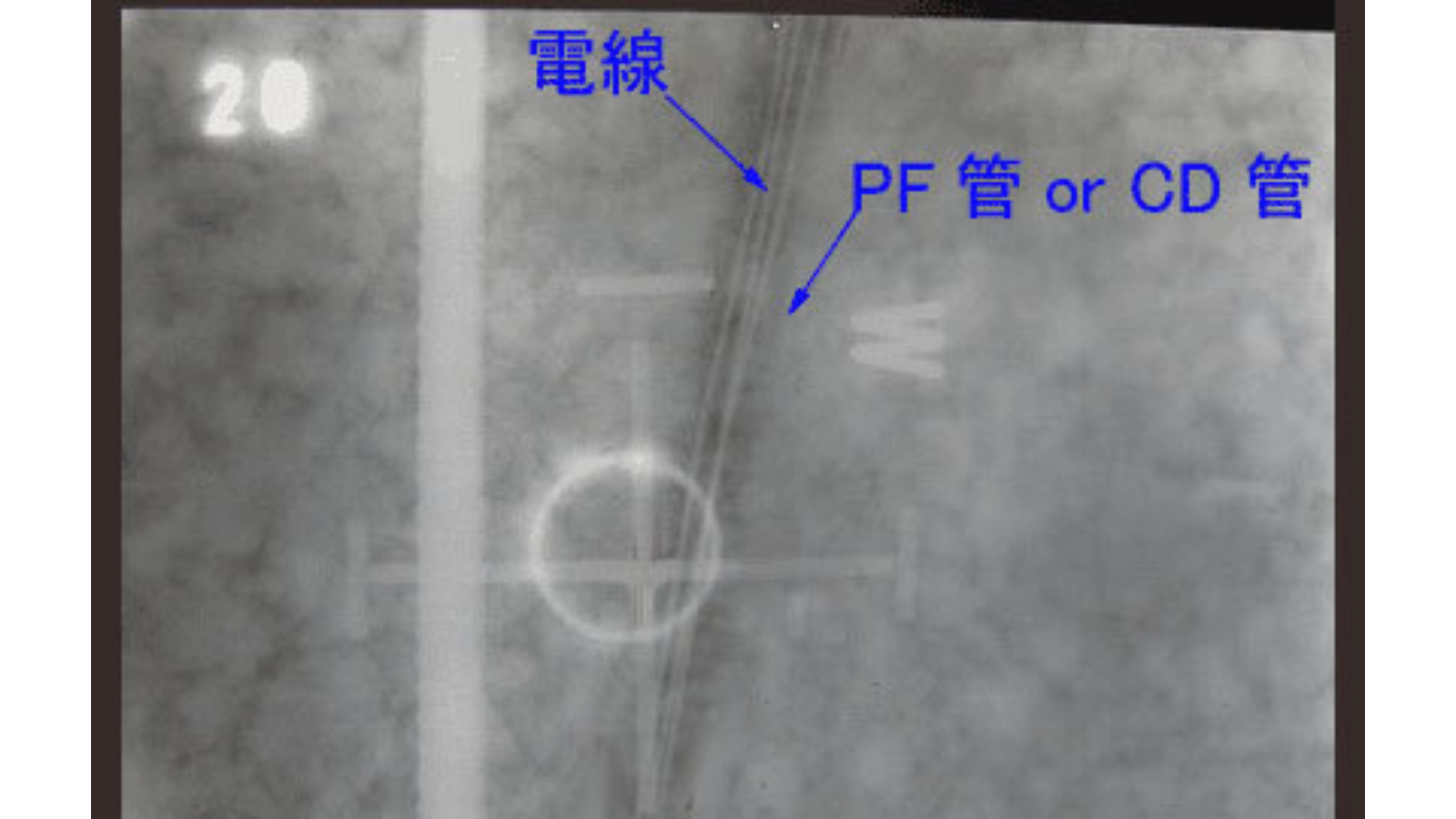 上の画像では撮影画像にコンクリートの中にある電線管と、更にその内部にある電線が見て取れます。